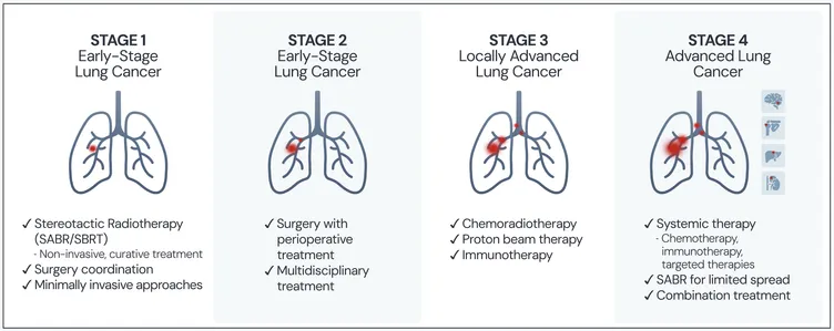 The best treatment for lung cancer depends on your cancer's stage, location, and your overall health. Here's an overview of the approaches I use for lung cancer at each stage - from curative treatment for early disease to strategic care for advanced cancer.